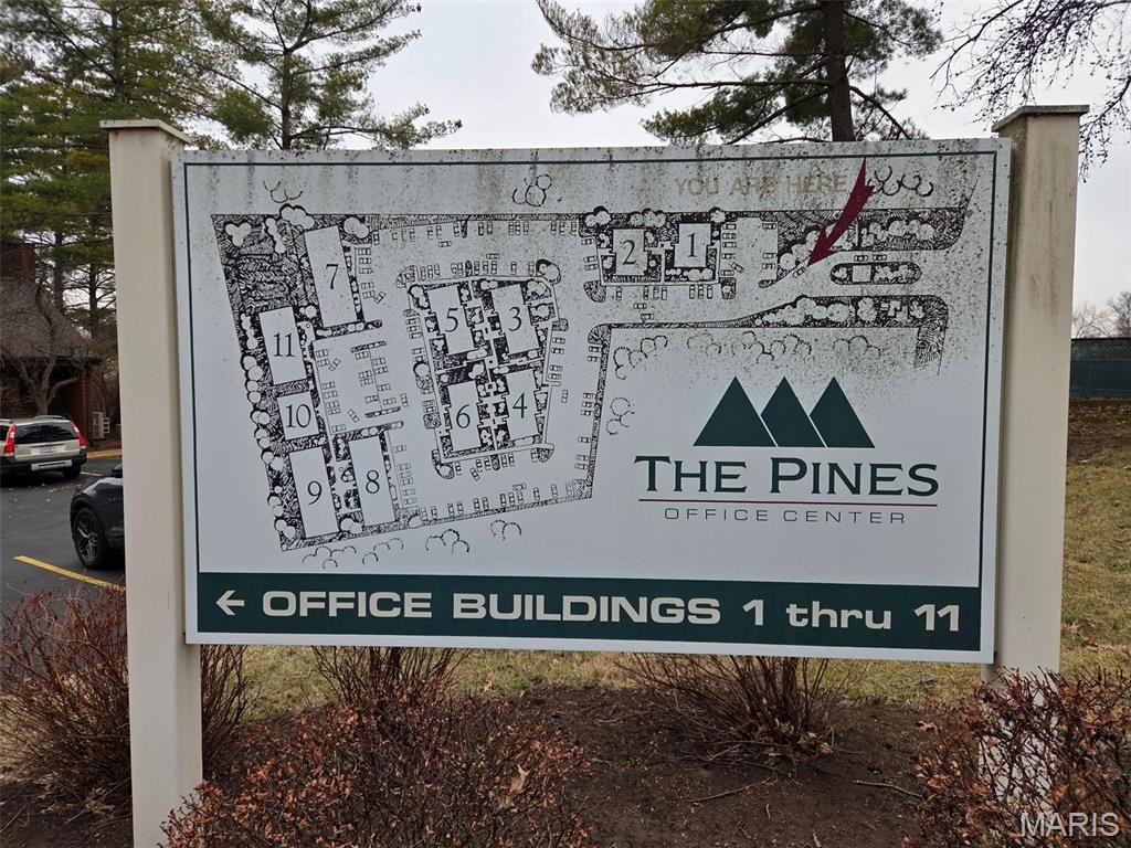 Excellent opportunity to own a conveniently located Office Condo in The Pines. Located close to the intersection of Olive Blvd and Woods Mill Rd. You, along with clients and employees with have convenient access to Hwy 141, banking, shopping and restaurants all within a few blocks of your new business location. This end unit, Courtyard Entry space features 3 generous sized Private Offices, along with a Reception Area, Break / Copy Room and a Private Bathroom. Stop paying rent and own your new business location!