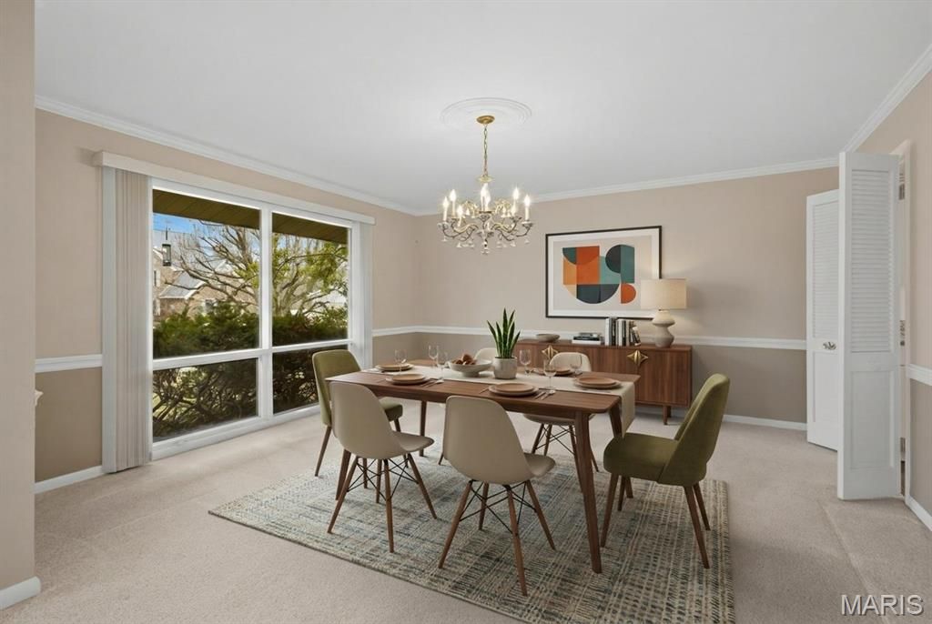 Welcome home to this terrific ranch in desirable Creve Coeur, filled with natural sunlight and thoughtfully designed living space! From the moment you step inside, you'll feel the inviting atmosphere. The spacious living room features a wall of windows and seamlessly flows into the dining room"”perfect for everyday living and entertaining. The updated kitchen offers ample cabinetry and convenient access to the rear yard - great for indoor-outdoor gatherings. The adjacent dining space provides the ideal setting for family meals or hosting guests. Separate from the living space are the bedrooms including a primary suite with attached bathroom that can be accessed through one of the other three additional bedrooms plus a full hall bath. Outside you will find a large rear yard"”plenty of room for play, gardening, or relaxing. An oversized two-car garage provides generous storage and parking spaces. Downstairs, the huge basement presents endless possibilities"”create a recreation room, home gym, workshop, or additional living space. Sought after Ladue Schools!