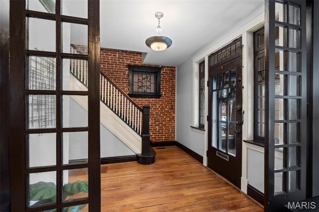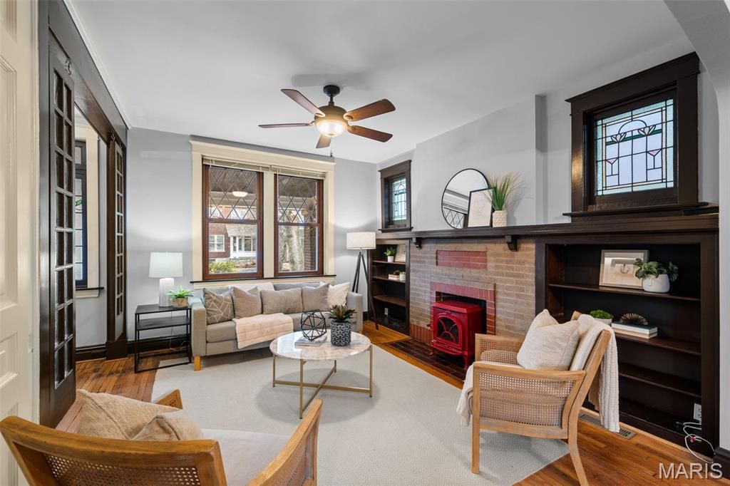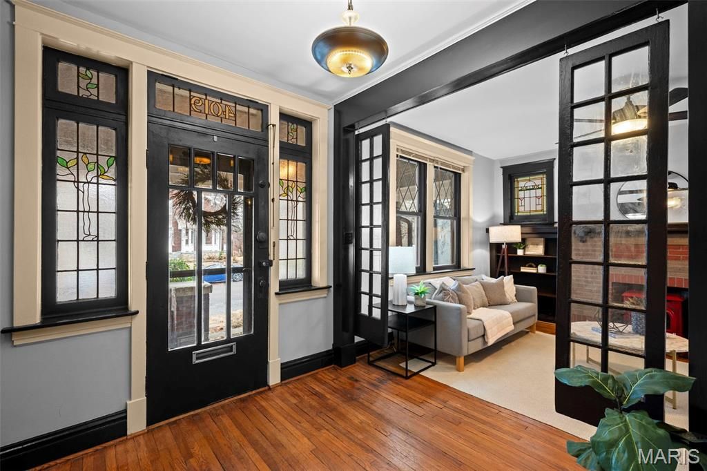 Open Sunday March 8, 1-3pm! This brick South City beauty has more personality than a Saturday morning at the Farmers Market. The "Welcome Home" Porch is covered with the original wood paneled porch ceiling. This house is made for waving at neighbors, sipping iced tea, and pretending you're in 1917 when this Craftsman style home was built. This historical architectural gem has freshly been painted, has beautiful stained and leaded glass throughout, original fireplace with built in shelving, and tapered columns. The kitchen features a unique concrete countertop and island with copper countertop and built in butlers pantry. Rounding out the first floor is a bright sun room with floor to ceiling built ins, the perfect quiet reading room, play room, or second living room. Enjoy the exposed brick as you walk to the 2nd floor featuring a primary bedroom with french doors opening to private sitting perch. The second bedroom is large and features a 2nd sunroom ideal for a home office or sitting room. This room also includes the 2nd floor laundry! This house not only has the quintessential historic details you expect in Tower Grove, but has lots of extras you wouldn't expect, check out the reclaimed wood 1/2 bath countertop with copper sink, enjoy the creativity of two pocket doors built into the wall and notice the charming windows hanging as you enter the living room. The Unicorn Feature: The brick 2-car garage not many of these are left and this one is in great shape and has just been tuck pointed. This cozy tree covered yard features a deck, privacy fence, patio and planter boxes. Bonus: New HVAC Summer 2024. This street is one of the prettiest in Tower Grove and has an active community of neighbors who are welcoming and come together to enjoy an annual Chili cook off in October. You are literally steps away from Tower Grove Park, the 289-acre crown jewel of St. Louis. Whether you're hitting up Food Truck Friday, joining a yoga session at the Roman Pavilion, or just admiring the Victorian gazebos, the park is your paradise. Walk a few blocks to South Grand, a global buffet. Head the other way to Morganford and have a pint at Amsterdam Tavern while watching a soccer match with the city's most dedicated fans. Walkable to the Carpenter Branch SLPS library, McDonald Park which has a splash pad and dog park. You are also just around the corner from everyone's favorite, Hartford Coffee!