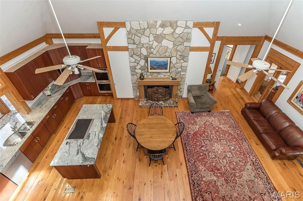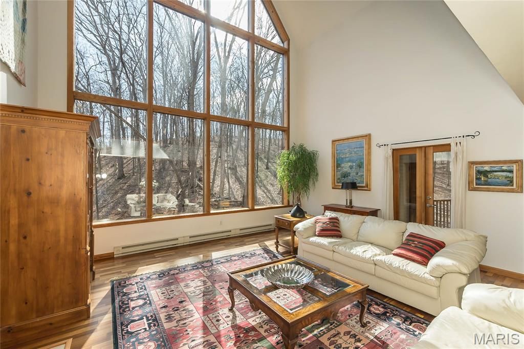 This unique French country home features 5 bedrooms and 6 bathrooms (3 full and 3 half) and was designed by artist John Pils in collaboration with Timberland Design. Set on 3 serene acres of wooded land, this architectural gem seamlessly combines artistry, craftsmanship, and comfort. The home boasts soaring cathedral ceilings, natural pine and red oak details, and thoughtfully crafted elements that reflect the tranquility of the surrounding landscape. The updated kitchen includes granite countertops and stainless-steel appliances, flowing effortlessly into a breakfast area and hearth room anchored by a stone wood-burning fireplace. A dramatic 2.5-story wall of windows floods the dining room and the adjacent two-story great room with natural light, providing breathtaking views of the property. The primary suite features cathedral ceilings, two spacious walk-in closets, and a spa-like bathroom complete with dual vanities, a separate shower, and a private water closet. Upstairs, you'll find two more bedrooms, a loft, and John Pils' hidden study. The walkout lower level offers impressive entertaining space, including a wine bar, a custom wine cellar, a tasting room, two additional bedrooms, and 1.5 baths. Two screened porches span both levels, creating the perfect setting for enjoying nature, sipping morning coffee, or unwinding with an evening cocktail. Additional highlights of this exceptional property include a mudroom and a 3-car garage, making it a rare offering that balances character and comfort in a private yet convenient location, minutes from the Valley. 64/40 makes this an ideal location, offering a sense of escape from your daily demands. Updates include Brand new septic system sintalled, 8/2025 new pump and drain field, new flooring in upstairs bathroom, main floor half bath and LL half bath, new showers in primary and LL, added stone and split rail fence and lights along driveway, installed retianing rock walls in backyard and along driveway, new asphalt driveway, custom wine cellar, HWH 2022, water softener installed, irrigation system installed, Roof is aprox 11 years.