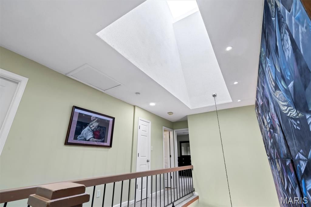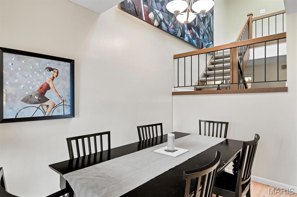 Beautifully updated 3 bedroom, 2.5 Bath condo in the highly sought after Treetop Condos in Ballwin. Finished basement! Walk into an open floor plan with multiple hang out spaces and lots of natural light throughout. The living room is a great gathering space, with charming woodburning fireplace, and sliding glass door that walks out to your own private deck / outdoor space. Head over to the large updated eat-in kitchen which has stainless steel appliances, white shaker cabinets, granite countertops, & subway tile backsplash. Right off of the kitchen is the spacious dining area, which has high ceilings & skylights above. Head upstairs where there is a spacious primary suite, and two other large bedrooms with excellent closet space as well. You will love the finished lower level with a rec room, bar area, full bathroom, laundry room, & storage room. Attached one car garage w/ private driveway. Condo fee includes: Pool, Clubhouse, exterior and common ground maintenance, snow removal, trash, water, sewer. All of this, at a great location.. come see this home today!
