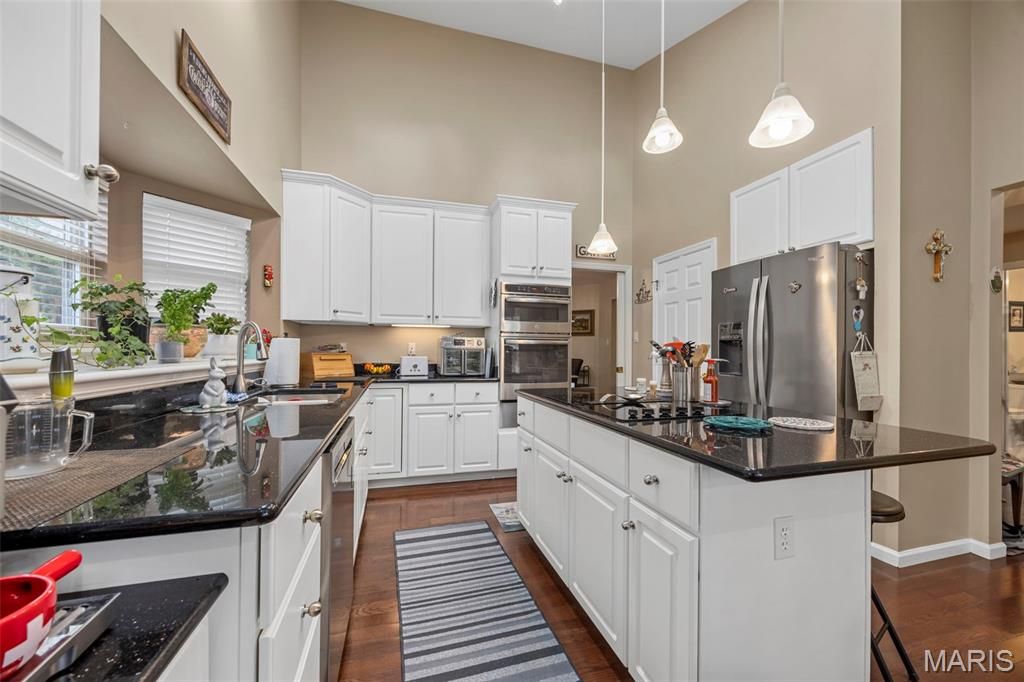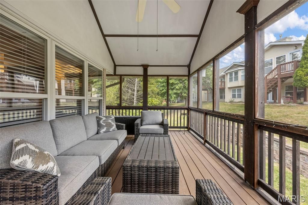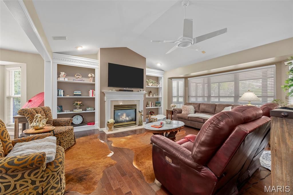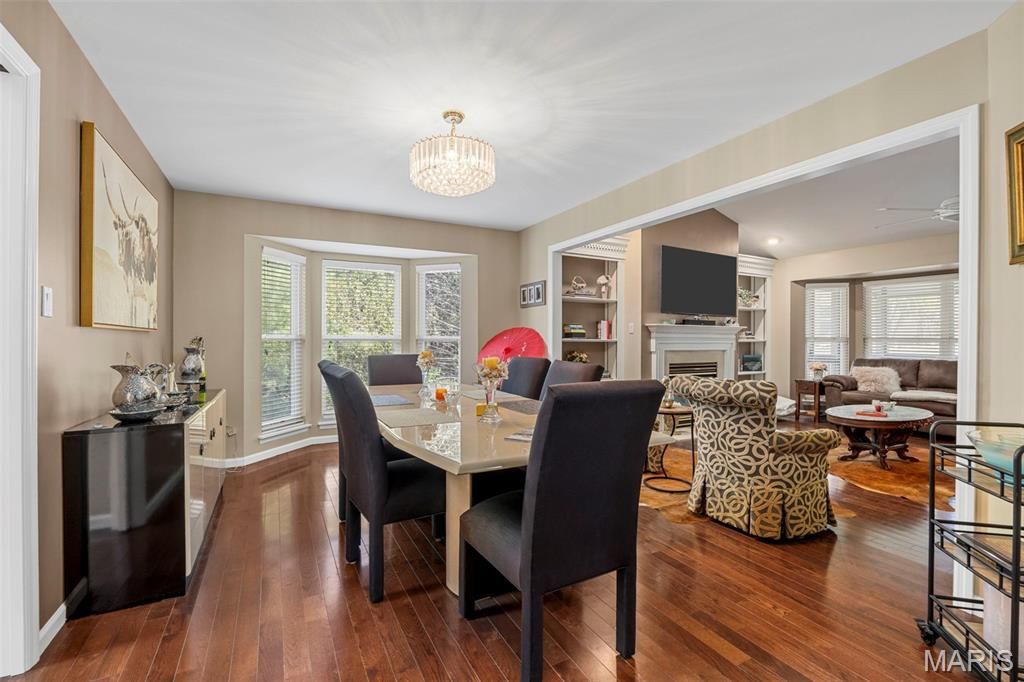 Showings Start Friday, 2/26/26. Welcome to this exceptional villa located in one of chesterfield's most desirable areas, offering a perfect blend of elegance, comfort, and functionally. From the moment you step inside. The beautiful wood floors that flow throughout the main level, setting the tone. The formal dining room features with natural light, while the vaulted great room features built in bookshelves and a cozy fireplace, ideal for gatherings or quit evenings. The gourmet kitchen is a true showstopper boasting, vaulted ceilings , 42 inch cabinets, granite countertops and a center-island perfect for gathering and everyday cooking. spacious primary suite with ample closets and a updated luxury bath featuring double vanities, and a jetted soaking tub. The finished lower level greatly expands your living space offering a wet-bar, additional bedroom and office/sleeping area laundry area and a full bath. Also don't forget the outdoor screened in porch for morning coffee or evening relaxation.