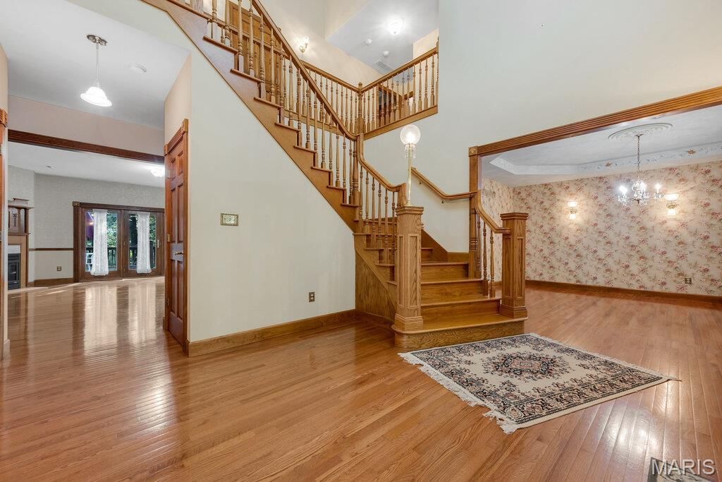 Want a big house and country living but still close to the city? Great you found it. The total finished square footage is approximately 6200 square feet and sits on a 3 acre lot. The rooms are all large (including bedrooms) The grand staircase is beautiful and compliments the antique fireplace mantle. The bonus room over the garage has lots of possibilities depending on your needs and the finished lower level adds to the space for entertaining or just spreading out. There are 3 bedrooms upstairs and 2 on the main level including main floor master suite. The hits just keep on coming outside as well. There is a wrap around covered front porch across the entire front of the home that continues to the back where there is decking across the back. There is a detached oversized garage for your extra toys or hobbies and more and more and more. New roof on home and garage in 2025.