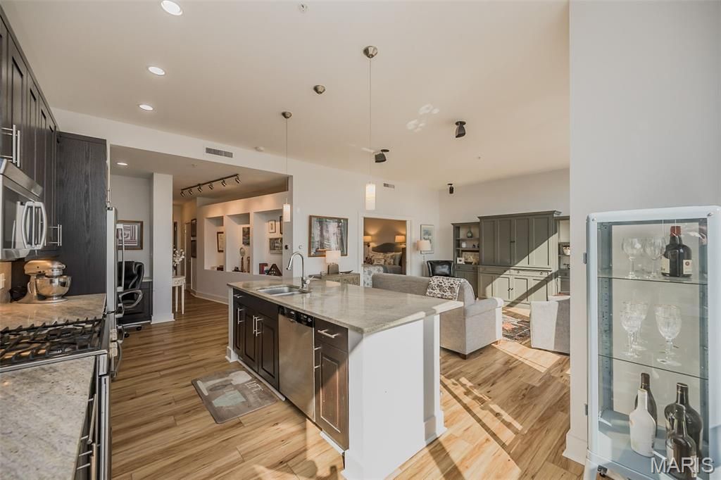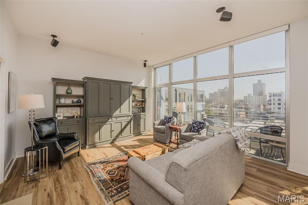 Urban living at it finest...contemporary condo living with floor to ceiling windows in the heart of the Central West End. Light filled 1 bedroom / 1.5 bath unit with open floor plan, large kitchen and living room and immediate access to the spacious terrace overlooking the lively Euclid Ave. Walking distance to all of the amenities available in the CWE including Whole Foods, restaurants, one block to Forest Park and walking distance to the BJC Medical Center. The condo includes a newer HVAC system (2024), washer/dryer (2024), refrigerator (2020), designer vinyl flooring and custom cabinets. Large primary ensuite bedroom includes double pocket door and shower/tub combo. The windows include battery operated shades. The living room includes surround sound speakers and the custom cabinet and shelving are included. The building is impeccably maintained and includes a pool, grill, outdoor entertaining space, fitness center, building management, parking spot 33 and storage unit 31.