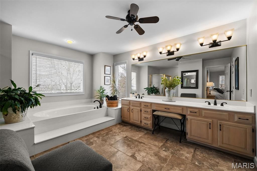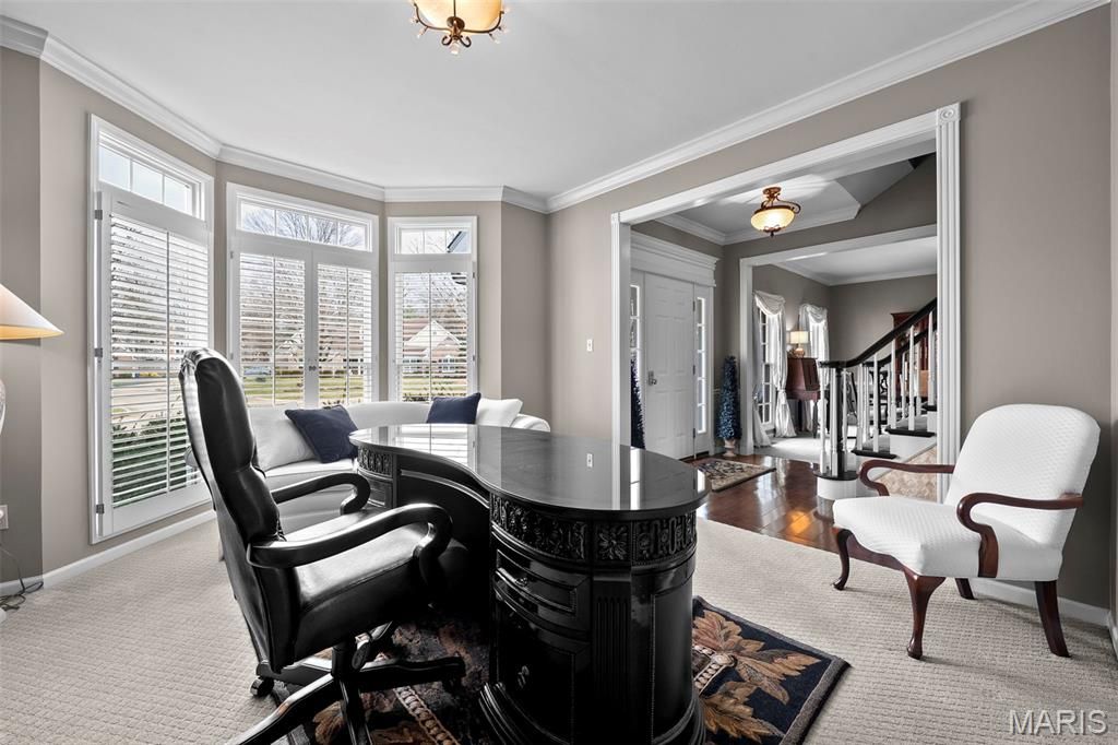 Talk about checking boxes! Award-winning Rockwood school district, sophisticated neighborhood in a coveted West County location off Kehrs Mill Rd., this 5-bedroom home with finished walk-out Lower Level is the TOTAL PACKAGE! This beauty isn't just a pretty face; she'll give worry-free ownership with updates like new roof & gutters, and newer Hardie Board siding and HVAC. Just imagine sitting on your NEW composite deck or expansive patio enjoying the privacy of the *flat* backyard the fully leafed trees will offer. Inside, you'll find rich wood floors, abundant natural light, plantation shutters, and a cozy gas fireplace with built-in shelves anchoring the family room. Gather friends in the spacious dining room & gorgeous kitchen, stunning with the endless prep space of newer quartz countertops, stainless steel appliances, gas island cooktop, wall ovens, and a convenient planning desk. Upstairs, the grand primary suite boasts a soaring cathedral ceiling, his-and-hers closets, and a spa-like bath with double vanities and a soaking tub. Bedrooms 2 and 3 share a Jack-and-Jill bath, and Bedroom 4 flexes perfectly as an office, nursery, or workout space. Downstairs, enjoy a true extension of living space with a media room, rec room, office nook, 5th bedroom, and full bath "” ideal for guests or multi-generational living. This is the space, layout, location, and setting to check those boxes on your list! Fall in love, move in, and ENJOY!