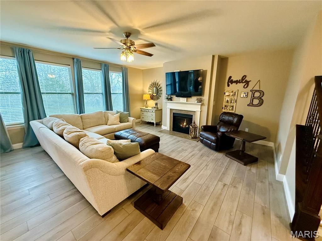 Welcome to this beautifully maintained home in the highly desirable Stonemoor subdivision of Wentzville. Perfectly positioned on a quiet double cul de sac, this home offers privacy, scenic views, and a location that is hard to beat. The backyard is a true highlight, backing to a peaceful wood line and open pasture that will likely remain undeveloped due to private ownership. Enjoy the view from the spacious composite deck with modern railing, creating the perfect setting for relaxing evenings or entertaining guests. Inside, the home features warm, inviting spaces with updated flooring throughout much of the main level. The bright living room centers around a cozy fireplace and offers plenty of natural light. The kitchen is both functional and stylish with granite countertops, dark cabinetry, a gas range, large center island, and abundant storage. The adjoining dining and living spaces create a comfortable flow that works perfectly for both everyday living and gatherings. Extra bonus items include a 24ft deep garage with 8ft doors, in ground sprinkler and 220 power ran to the garage. Located within the Wabash Elementary boundaries and right inside the neighborhood, Stonemoor offers exceptional amenities including two community pools (one with zero entry for younger kids and another deeper pool for older kids and adults), playground, and basketball court. Just across the street you will find Rotary Park, one of Wentzville's most loved destinations featuring fishing lakes, walking trails, playgrounds, the St Charles County Fair, holiday light displays, and year round community events. With easy access to Highway 70 via Highway Z and Hoekel Parkway, this home offers the perfect balance of peaceful neighborhood living and convenient access to everything Wentzville has to offer. This is the kind of home where comfort, location, and community all come together.