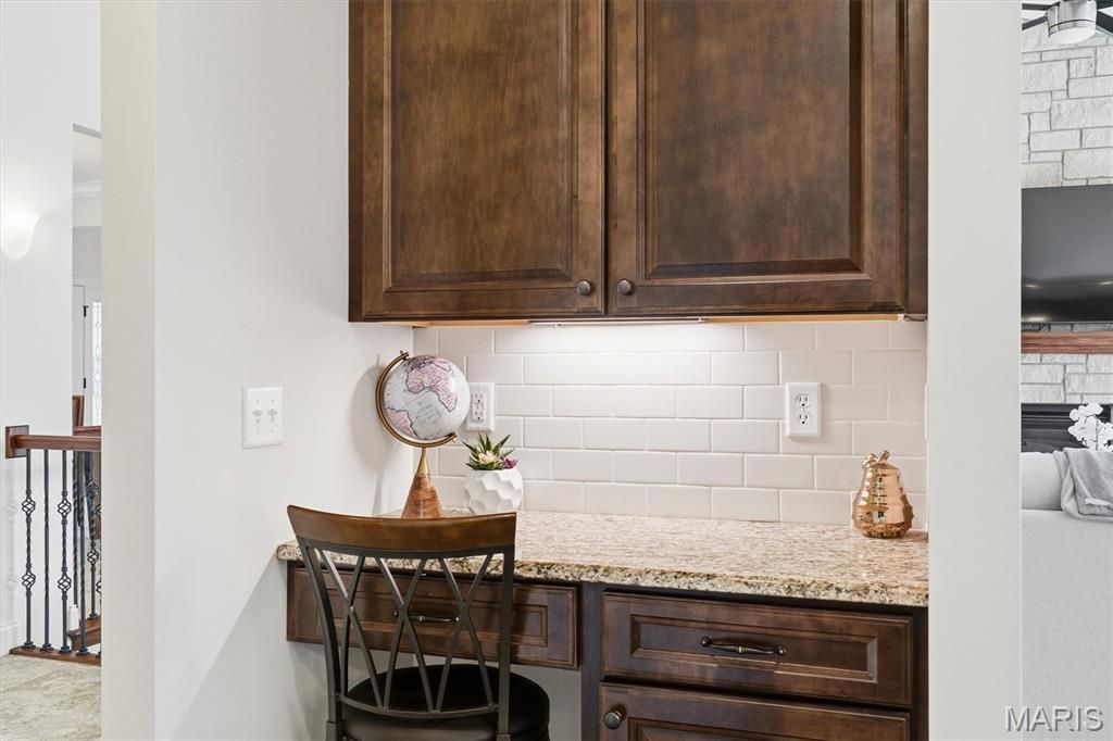 Just steps from Castlewood State Park, this stunning ranch offers 4,572 square feet of beautifully designed living space, tucked away in a quiet wooded valley on a peaceful cul-de-sac. Inside, soaring 20-foot coffered ceilings enhance the open-concept layout, anchored by an impressive great room featuring a dramatic floor-to-ceiling stone fireplace, and a wall of windows that fills the home with natural light. The gourmet kitchen boasts an oversized chef's island, breakfast bar, double ovens, and abundant workspace. The expansive primary suite is thoughtfully positioned on its own private wing, creating a true retreat complete with a spa-inspired bath and an oversized walk-in closet that conveniently connects to the main-floor laundry. Three additional generously sized bedrooms provide ample space for family and guests alike. The bright, finished 1,700-square-foot lower level expands your living options with a spacious recreation room, additional bedroom, full bath, and additional unfinished space for storage or future expansion. Outdoors, unwind on the custom-designed deck overlooking serene wooded views, a lush lawn, and a fully fenced backyard. Additional highlights include a new roof (2024), sprinkler system, and a custom workshop in the garage.