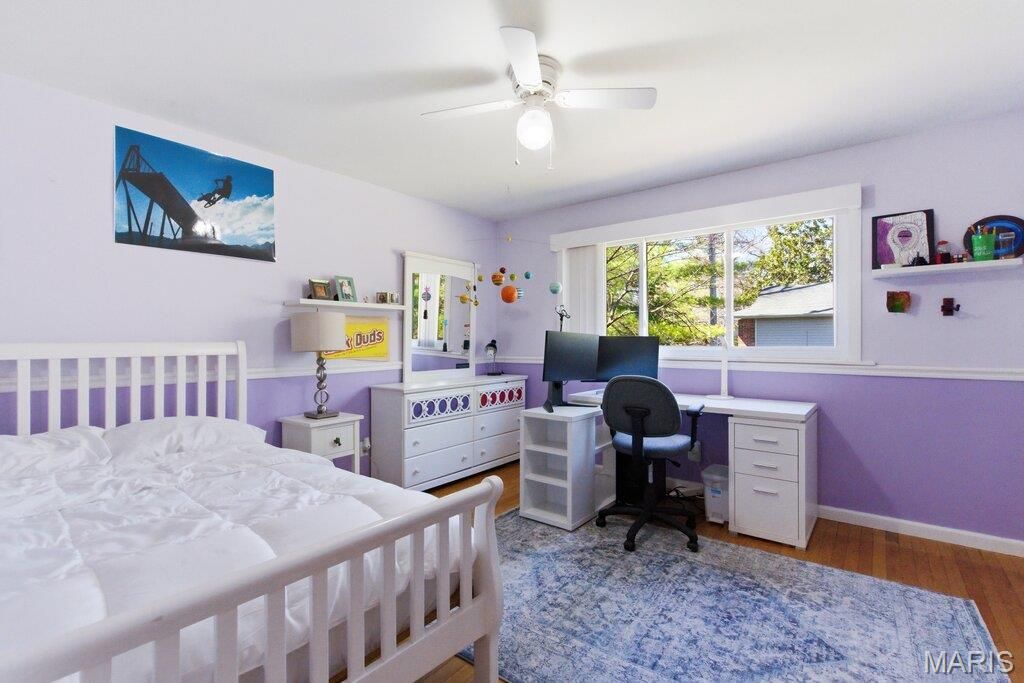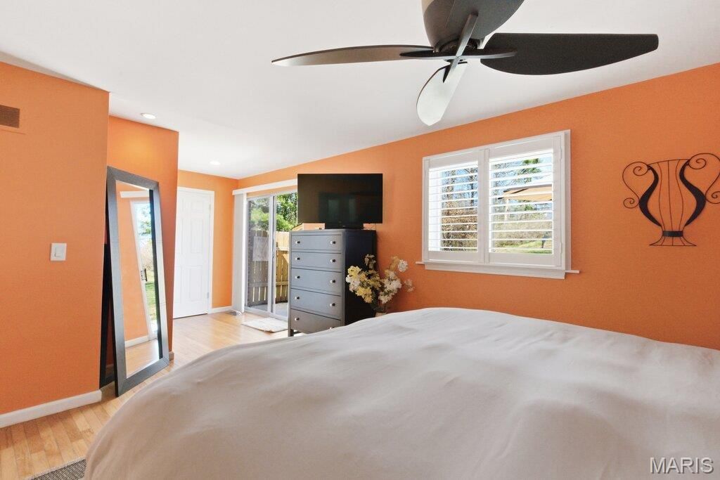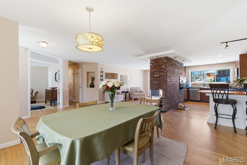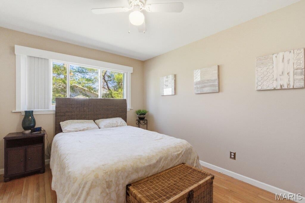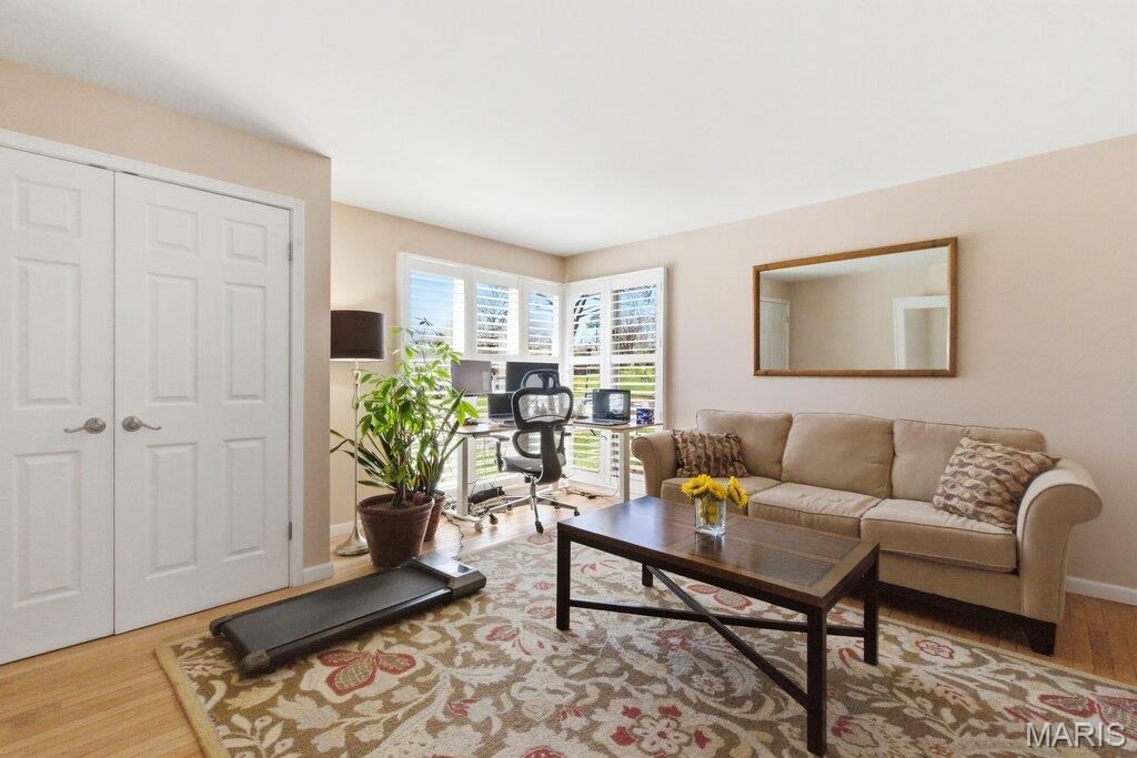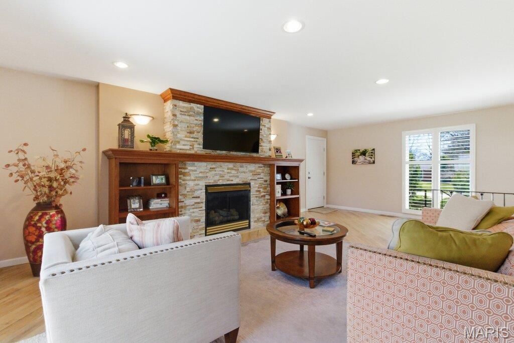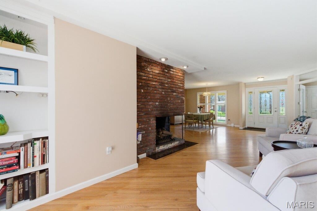 Large 4 bedroom 2 full bathroom home with numerous updates and upgrades! This remarkable open floor plan is filled with ambient natural light via the updated windows. The enormous great room complemented with recessed lighting, gas fireplace, brick hearth, and wood floors! The Spacious kitchen is arrayed with newer stainless steel appliances, updated 42 inch cabinets, recessed lighting, center isle/breakfast bar, and wood floors. The separate dining room has ample space for a china cabinet and dining table with extra chairs and table leafs. The living room is designed with a gas fireplace, recessed lighting, wood floors sliding glass door to patio, and built-in book shelves. The primary bedroom suite is arrayed with wood floors, recessed lighting, plantation shutters, and dual closets. The updated primary bath is designed with two bowl vanity, built in shelves, separate tub & shower, and water closet. Three other large bedrooms round out the sleeping arrangements. A main level office is complemented with french doors & transom window, wood floors, and plantation shutters. It could be used as a bedroom as well. The finished lower level begins with a huge recreation room with recessed lighting. The exercise room is currently utilized as a yoga studio, and has ample space for plenty of exercise equipment. The basement workshop has ample space to store all your tools and machines. The level fenced back yard is arrayed with a massive concrete patio that easily holds all your patio furniture, plus grill and smoker. It is complemented with a shed for your patio storage needs. The garage is extra deep and extra wide. All this plus, updated windows, newer commercial grade water heater, gutter guards, and Parkway Schools. Super convenient location near shopping, schools, restaurants, and highways.