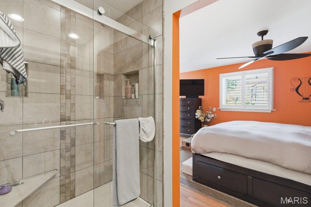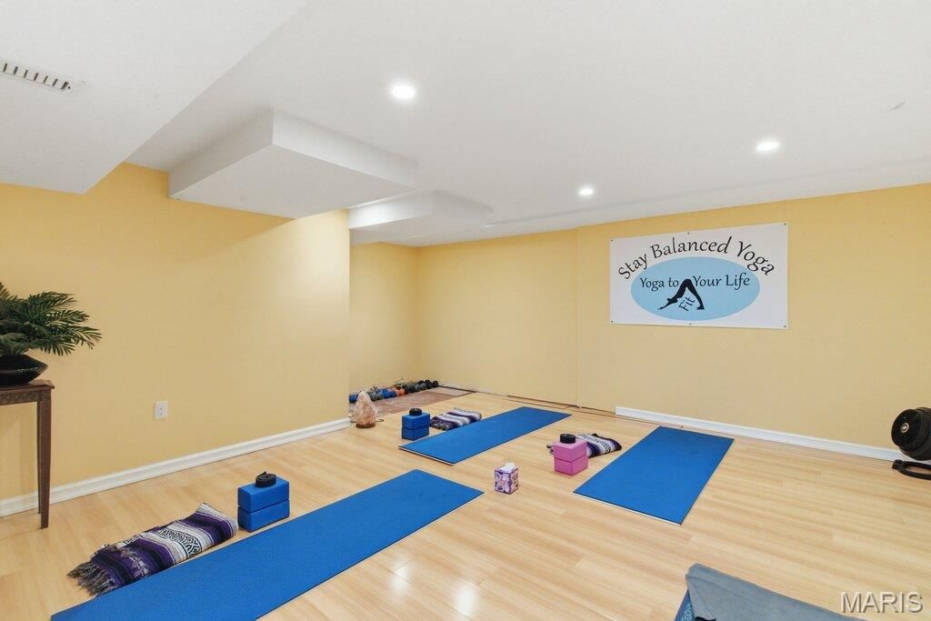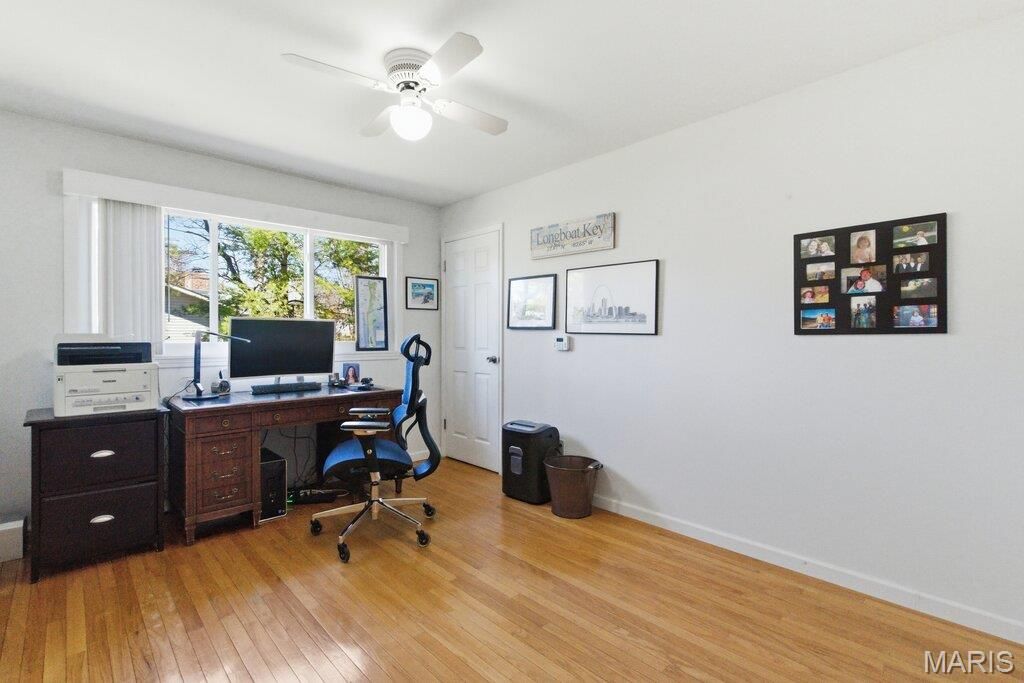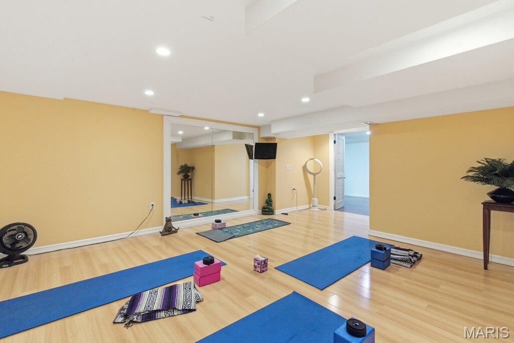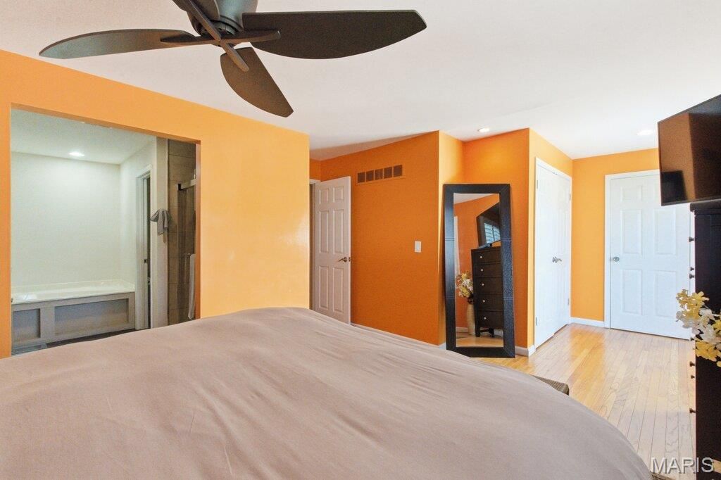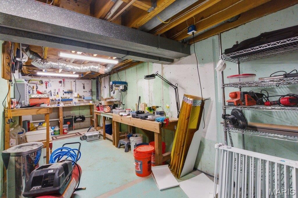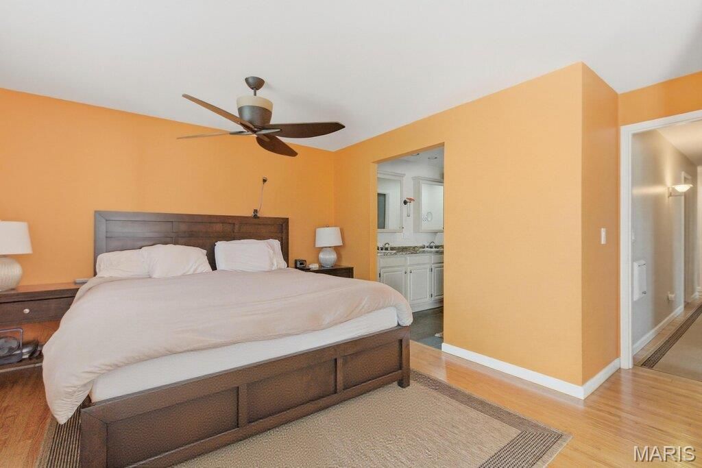 Large 4 bedroom 2 full bathroom home with numerous updates and upgrades! This remarkable open floor plan is filled with ambient natural light via the updated windows. The enormous great room complemented with recessed lighting, gas fireplace, brick hearth, and wood floors! The Spacious kitchen is arrayed with newer stainless steel appliances, updated 42 inch cabinets, recessed lighting, center isle/breakfast bar, and wood floors. The separate dining room has ample space for a china cabinet and dining table with extra chairs and table leafs. The living room is designed with a gas fireplace, recessed lighting, wood floors sliding glass door to patio, and built-in book shelves. The primary bedroom suite is arrayed with wood floors, recessed lighting, plantation shutters, and dual closets. The updated primary bath is designed with two bowl vanity, built in shelves, separate tub & shower, and water closet. Three other large bedrooms round out the sleeping arrangements. A main level office is complemented with french doors & transom window, wood floors, and plantation shutters. It could be used as a bedroom as well. The finished lower level begins with a huge recreation room with recessed lighting. The exercise room is currently utilized as a yoga studio, and has ample space for plenty of exercise equipment. The basement workshop has ample space to store all your tools and machines. The level fenced back yard is arrayed with a massive concrete patio that easily holds all your patio furniture, plus grill and smoker. It is complemented with a shed for your patio storage needs. The garage is extra deep and extra wide. All this plus, updated windows, newer commercial grade water heater, gutter guards, and Parkway Schools. Super convenient location near shopping, schools, restaurants, and highways.