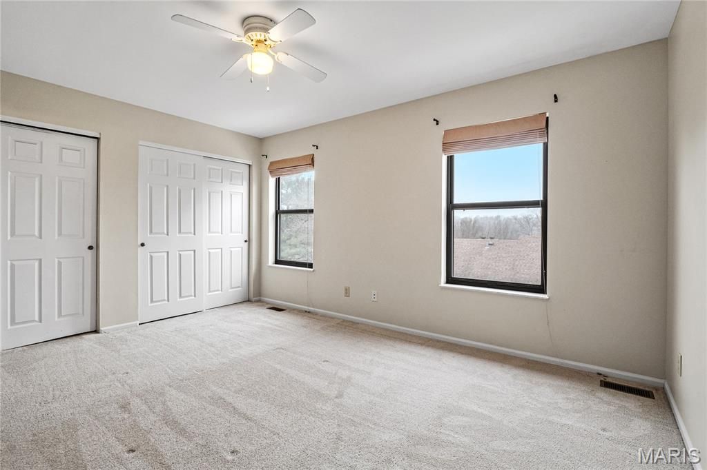 Conveniently located condo in the heart of Chesterfield! This 2 bed 2.5 bath offers a spacious living room with wood burning fireplace, opening to a sunny kitchen with ample cabinet space, pantry, new stainless steel appliances (2021), & breakfast room. The primary bedroom suite is a dream with his/her closets & large en suite. The secondary bedroom sports a walk in closet & another large en suite. Finished lower level provides additional living space with fantastic recreation room, laundry room, & garage access. Other amenities include NEW 18x8 deck (2020), community pool, exercise facilities, clubhouse, tennis courts, playground, & LOCATION! Award winning Parkway Schools & just minutes from popular shopping & dining. Ready for immediate occupancy. Tenant only pays electric.