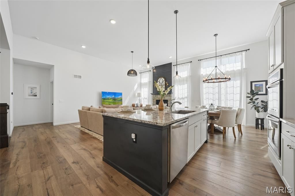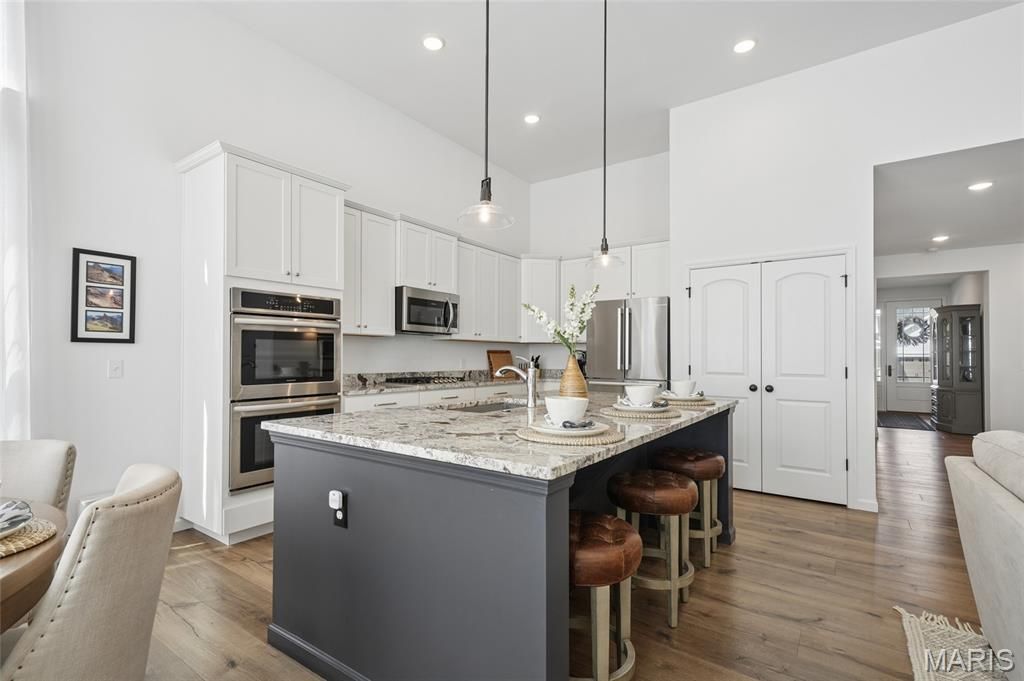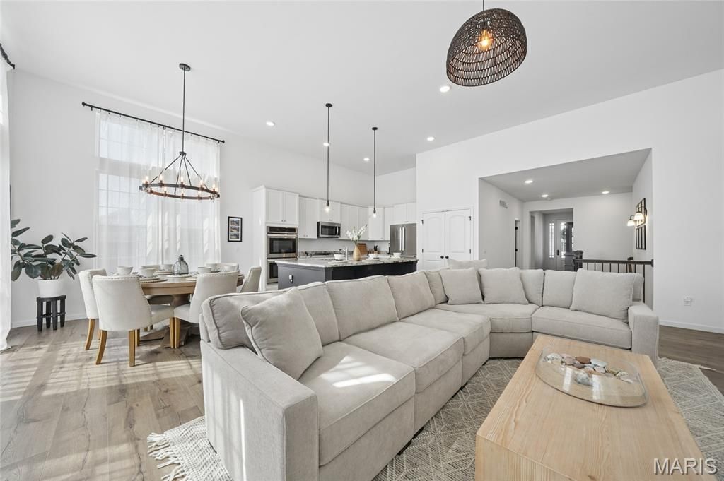 Welcome to 2472 Grover Ridge Drive! This well maintained home in the Main Street Crossing community is a true gem and you don't want to miss this charming neighborhood! The main level features high ceilings, an open concept floor plan ideal for entertaining, and is filled with all the natural light you'll ever desire. The gorgeous kitchen, complete with a large island, custom cabinets, full pantry, and stainless steel appliances is a true chefs dream. Retreat to the spacious primary suite designed for comfort and privacy. This inviting space features a generously sized bedroom; the perfect place to unwind at the end of the day. The suite includes a private en-suite bathroom with a double vanity, separate shower, and soaking tub, offering a spa-like feel at home. A large walk-in closet provides ample storage and organization, completing this thoughtfully designed owner's retreat. The main level also features 2 other bedrooms and full bathroom. The lower level is finished with a large recreation room, 4th bedroom with egress window, private office, full bath, and tons of storage. (square footage is an estimate at this time) Across the street from the Wildwood Greenway walking trail and minutes from Wildwood Dog Park and Wildwood Town Center, make this home ideal for blending nature and community. This home has been meticulously maintained and reflects true pride of ownership. If you're looking for a nearly new built home with sophistication, style, and comfort, you'll love this one! Showings begin March 27 at noon. Professional photos coming with floor plans and virtual tour.