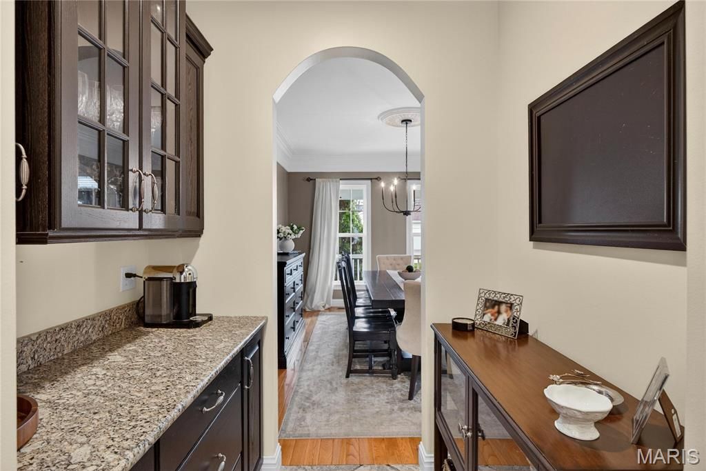 Turnkey Two Story in Dream Kirkwood location near Keysor Elementary and Kirkwood Park. Defined Curb appeal with Gable Dormers and Welcoming Front porch. Front Door with decorative glass sidelights opens into warm hard wood floors that run throughout main level. Entry is flanked by main floor office and private dining Room both with crown molding, columns, and arched entries. Large Family Room with recessed lighting, plantation shutters, and gas fireplace is perfect gathering space. Freshly painted Breakfast Room walks out to patio. Kitchen with 42" cabinets, stainless Steel appliances including gas range w/ hood, and granite countertops. Coffee/drink station adjoins dining room. Brand new carpet on stairs and entirety of 2nd floor. Primary Bedroom with vaulted ceiling, two walk in closets, and more plantation shutters. Primary bath w/ oversized double vanities. Glass encased shower and separate tub with jets. There are three beds upstairs for the family. Bed 2 is en-suite w/ full bath. Beds 3 and 4 share Jack-N-Jill bath. Upstairs laundry! Stylish 2 panel doors throughout. Finished LL with Rec Room and bar is great entertaining space. Bedroom w/ egress window connects to full bath which was recently remodeled. Rear patio is great spot to BBQ and watch the kids play. 2 car detached garage. This Move in Ready Home is walkable to all things KWD! Great family Home for the next chapter in your life in the heart of Kirkwood!