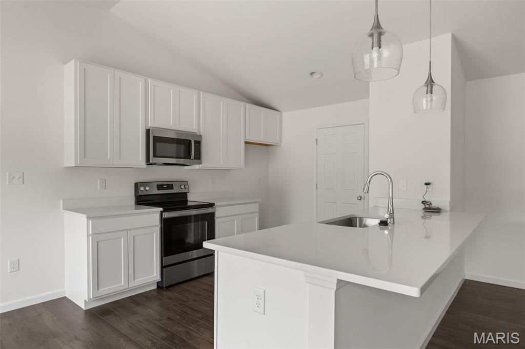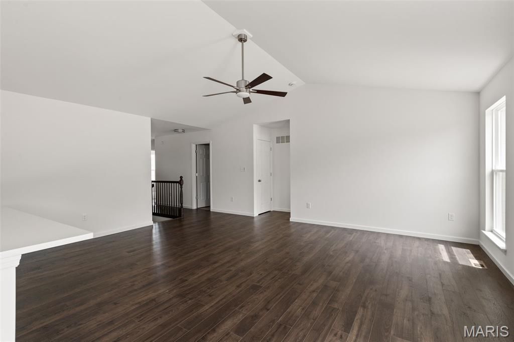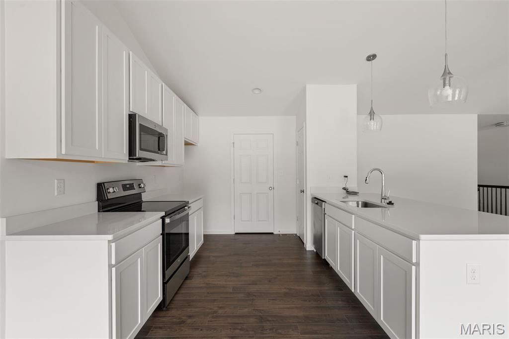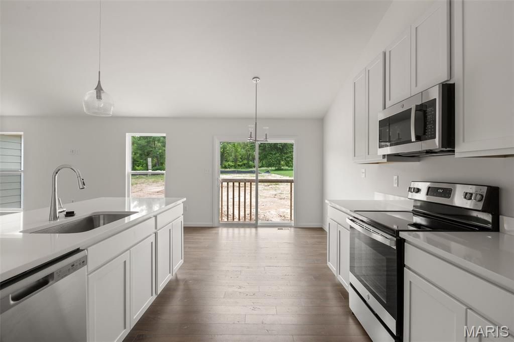 New McBride Homes Aspen ranch 3BR, 2BA will be ready this summer! Walkout homesite! Enjoy an open floor plan with a vaulted ceiling, great room with a ceiling fan, & wood laminate flooring throughout the main living areas. The kitchen features level 4 Brellin White 42" cabinetry, quartz countertops, peninsula with an extended breakfast bar, stainless steel GE appliances. The primary suite has a walk-in closet, private bath w/dual sink vanity & 5ft walk-in shower. 2 extra bedrooms & a full bath add convenience. Upgrades include 6ft windows, matte black lighting/plumbing fixtures, ceiling fan prewires, 1st floor laundry, garage coach lights & 2 panel white interior doors. The lower level has a ¾ bath rough-in for future finish. Westhaven is included in the Wentzville School District & is located off Peine Road, with easy access to both Highway 40 & Interstate 70. Enjoy peace of mind w/McBride Homes' 10-year builders warranty & incredible customer service! Similar photos shown.