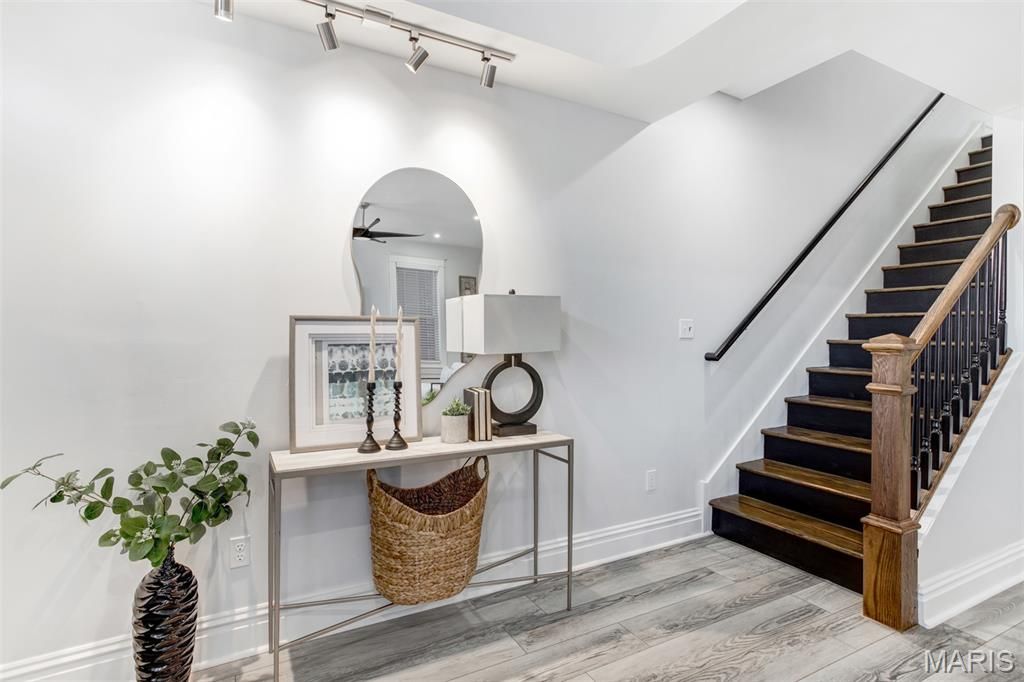 Love historic Soulard but worry about the upkeep of a 100+ year-old home? This stunning 4-year-old home offers the charm of the neighborhood with the comfort, efficiency, and ease of newer construction. Designed for entertaining and everyday luxury, this home is loaded with thoughtful upgrades. The kitchen and all baths feature quartz countertops, while the dreamy primary suite offers heated bathroom floors, an oversized custom closet, a heated towel rack, and a private deck with hot tub for the ultimate retreat. A spacious second-floor laundry room provides abundant storage, and all three generously sized bedrooms feature their own private baths. The finished lower level offers incredible flexibility with a bedroom that could easily serve as a home theater, gaming room, or guest suite. The kitchen is a chef's delight with two pantries and KitchenAid Professional Series appliances. A built-in bar, wiring for flat screens, and even a bonus slot machine (for entertainment only) make this home ready for fun. 3 Levels of living. Enjoy Soulard's vibrant lifestyle with parks, restaurants (Foodies' dream), nightlife, and the beloved Community of Gardens all just a stroll away. Located in a golf cart-friendly neighborhood, getting around is part of the fun. Solar panels help significantly reduce power costs, while the attached garage with epoxy floors, gutter guards, window screens, and an installed security system add even more convenience. A large lower-level storage room with utility sink offers endless possibilities for an indoor garden, artist studio, or workshop. With easy interstate access and an unbeatable combination of style, comfort, and low-maintenance living, this is a rare Soulard find.