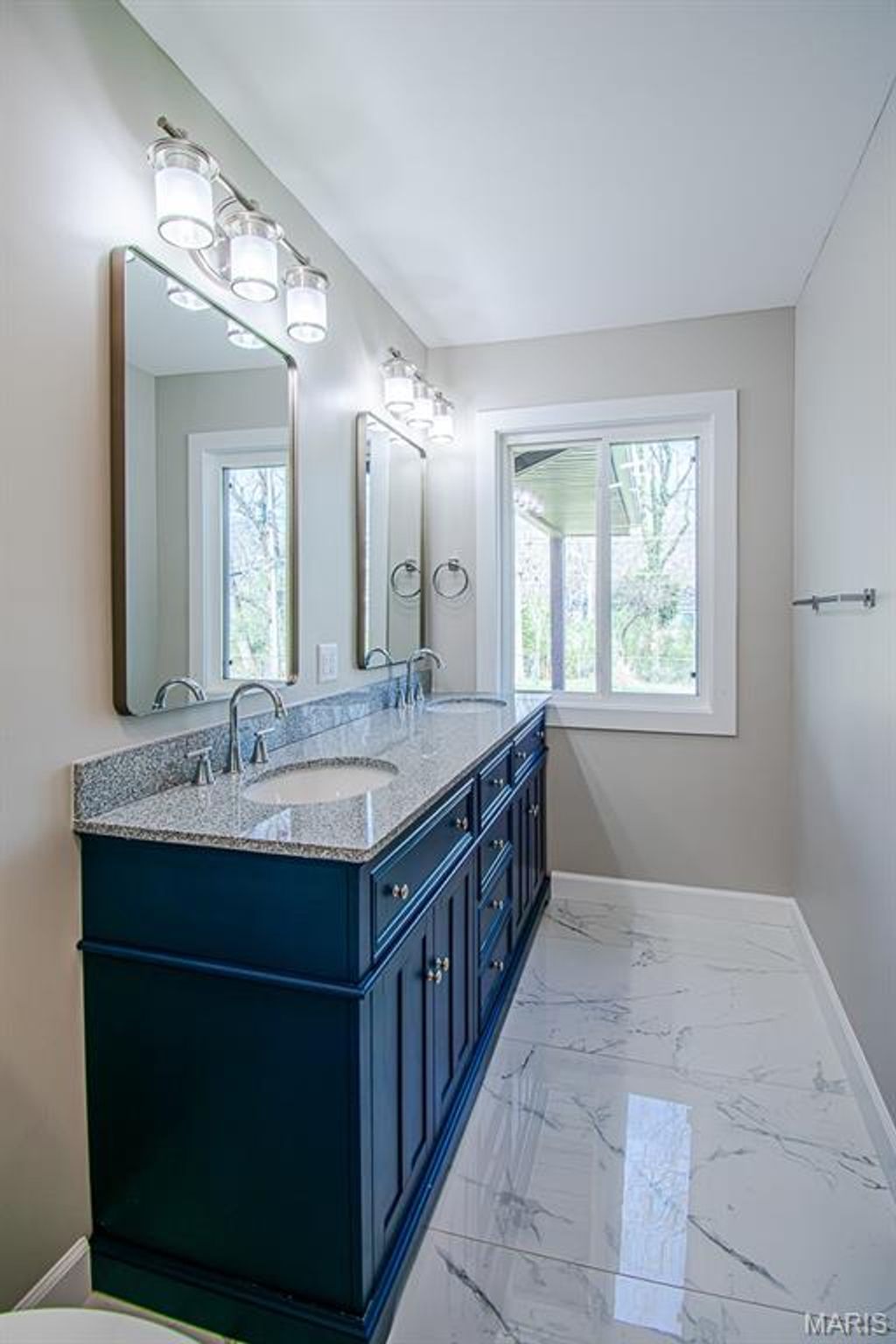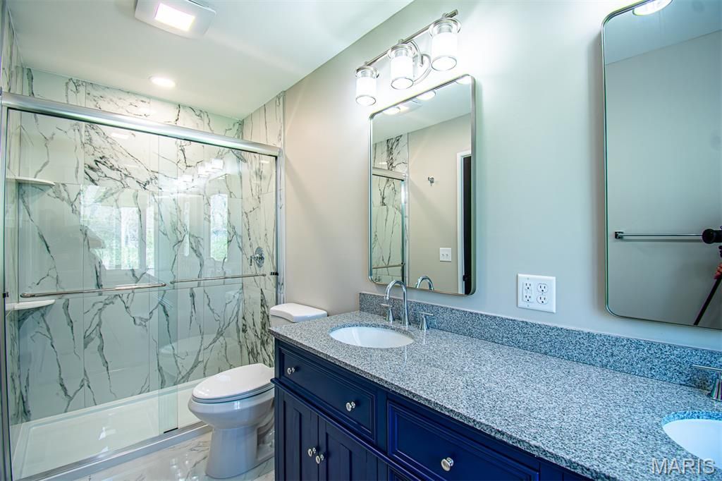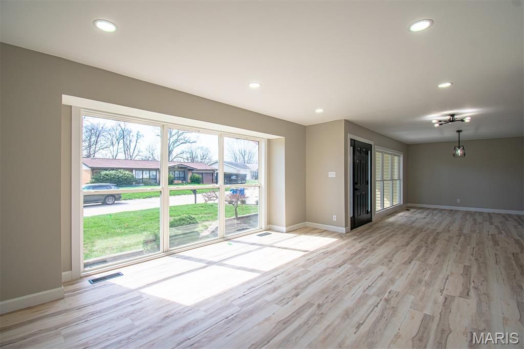 Welcome to 13123 Dartagnan Ct, nestled in the sought-after Bellerive Estates subdivision - where TIMELESS CHARM MEETS MODERN LUXURY in a home that lives like - NEW CONSTRUCTION. This stunning Ranch has been completely and thoughtfully reimagined from top to bottom. The result is a beautifully redesigned, OPEN-CONCEPT HOME offering OVER 3,000 sqft of Finished Living Space - BLENDING CONTEMPORARY STYLE WITH EVERYDAY FUNCTIONALITY. From the moment you step inside, you'll feel the difference. The main living area has been fully opened up, allowing natural light to pour in from the walls of windows and creating a seamless flow between spaces. Whether you're in the formal family room, elegant dining area, or the expansive kitchen and living room, every space connects effortlessly perfect for both entertaining and daily living. The heart of the home is the show-stopping kitchen and vaulted living area. Featuring soaring ceilings, recessed lighting, and a massive 9x5 center island with bar seating, this space was designed to impress. You'll love the 42" cabinetry, quartz countertops, stylish backsplash, stainless steel appliances, and the added convenience of a butler's pantry. Just off the kitchen, a wide hallway leads to a walk-in pantry, a beautifully updated half bath, and a spacious laundry room with a window overlooking the private backyard. The main level offers three well-appointed bedrooms, including a bright and inviting primary suite complete with a walk-in closet and a spa-like ensuite bath featuring a large walk-in shower, double vanity, and designer finishes. The secondary bedrooms are thoughtfully designed, including one with dual closets and a built-in niche - perfect for a dresser or media setup. An additional full bathroom with a soaking tub completes the main floor. Downstairs, the nearly fully finished lower level expands your living options even further, offering two large recreational areas and a full bathroom - ideal for entertainment, a home theater, gym, or guest space. You'll also find a massive 30x15 utility/storage room with additional laundry hookups, plus another unfinished area ready for future expansion. Step outside to enjoy a large covered back porch (16x30) overlooking a fenced backyard that backs to peaceful wooded views - your own private retreat. THIS HOME DOESN'T JUST LOOK NEW - IT IS NEW WHERE IT MATTERS MOST. Major Upgrades Include: NEW ARCHITECTURAL ROOF, NEW GUTTERS, NEW VINYL WINDOWS, A NEW CONCRETE DRIVEWAY AND PATIO, ALL-NEW PVC PLUMBING (Including Sewer Line), A COMPLETE ELECTRICAL REWIRE WITH A NEW 200-AMP PANEL, NEW DUCTWORK, A HIGH-EFFICIENCY HVAC SYSTEM, AND A NEW 50-GALLON WATER HEATER. INSIDE, YOU'LL FIND ALL-NEW LUXURY VINYL PLANK FLOORING, MODERN BASEBOARDS, DESIGNER LIGHTING, AND COMPLETELY REMODELED BATHROOMS WITH HIGH-END FINISHES THROUGHOUT. Fresh landscaping adds to the already impressive curb appeal. This Is Not Your Typical Renovation - THIS IS A FULL TRANSFORMATION. It is a rare opportunity to own a home that offers - The character of an established neighborhood with the - FEEL, FUNCTION, AND PEACE OF MIND OF -NEW CONSTRUCTION. Schedule your previews Today !!!