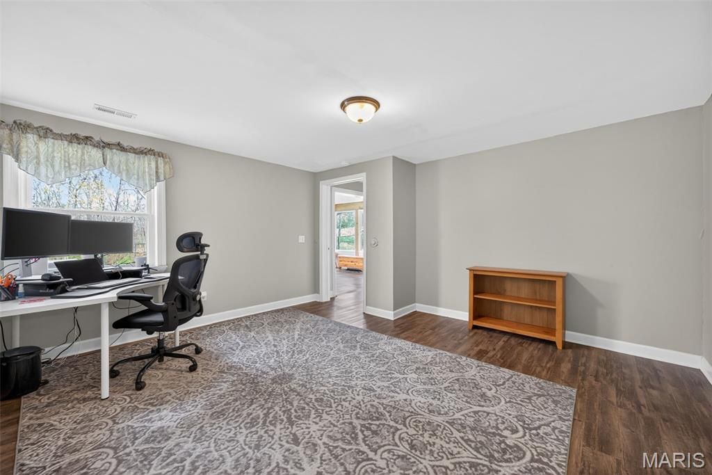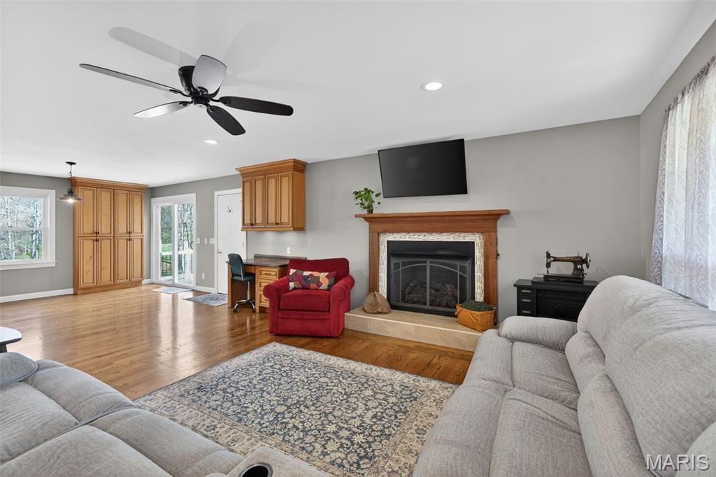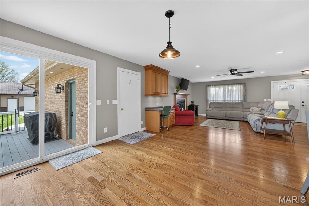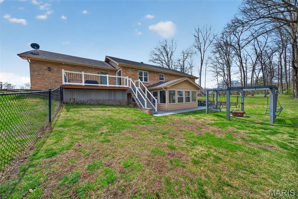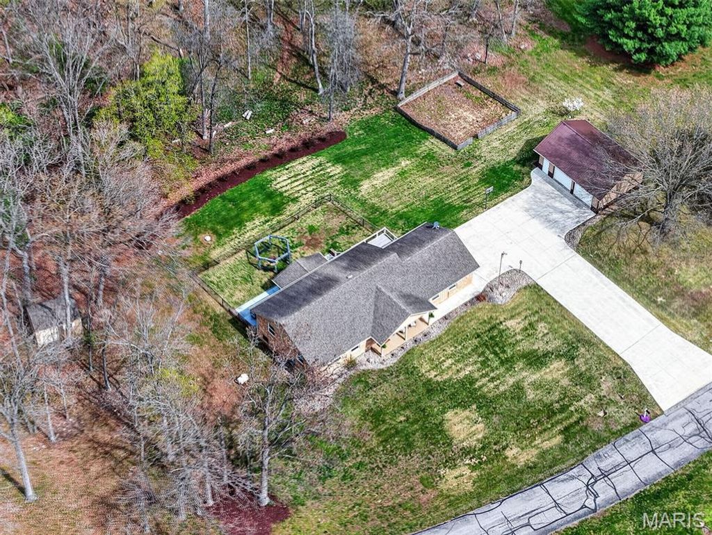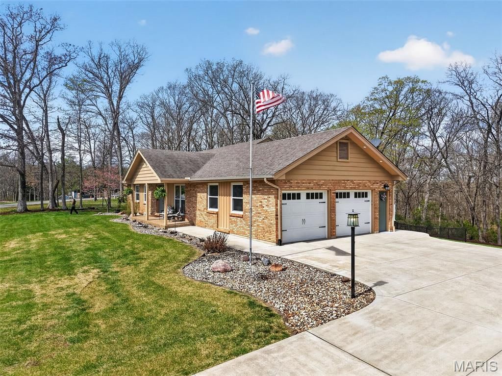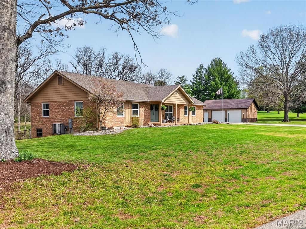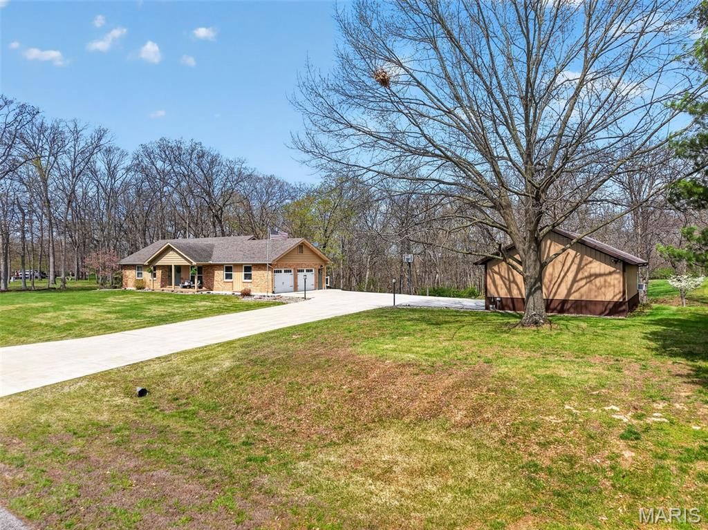 Welcome to this beautiful, brick ranch home perfectly nestled on 3 private acres backing to serene woods, offering the ideal blend of comfort, space, and peaceful surroundings. As you arrive, you're greeted by a large, newer concrete driveway (2020) and an impressive 24x36 detached garage featuring an enclosed, heated room"”perfect for a workshop, hobby space, or additional storage. Step inside to a welcoming foyer showcasing gleaming hardwood floors and a cozy fireplace, setting the tone for the warm and inviting interior. The open floorplan flows seamlessly into an updated kitchen complete with stylish cabinetry, a matching built-in desk area, and pantry cabinets"”designed for both function and convenience. The adjoining dining area opens to a newer sliding door (2015) leading to an updated composite deck, ideal for outdoor entertaining or simply enjoying the scenic backyard. The main level features a spacious primary suite with dual closets and a stunning custom bathroom, complete with a second washer and dryer hookup for added convenience. An oversized hall bath and a generous second bedroom complete the main floor. The finished lower level offers exceptional versatility, featuring a large recreation room with a gas fireplace and the potential for multigenerational living with space for a future kitchenette. You'll also find a third bedroom, full bathroom, and an additional flex room perfect for a home office or guest space. A bright sunroom provides a relaxing retreat and walks out to a patio, extending your living space outdoors. Notable updates include HVAC (2020), water softener (2016), main area light fixtures (2025), upgraded electrical panels with added 200-amp service (2013), double-hung windows on the main level (2015), front door (2017), removal of popcorn ceilings, and updated bedroom carpeting (2015). Washer, dryer, and kitchen refrigerator are included"”making this home truly move-in ready. Don't miss this rare opportunity to own a well-maintained home with modern updates, flexible living space, and a picturesque setting.