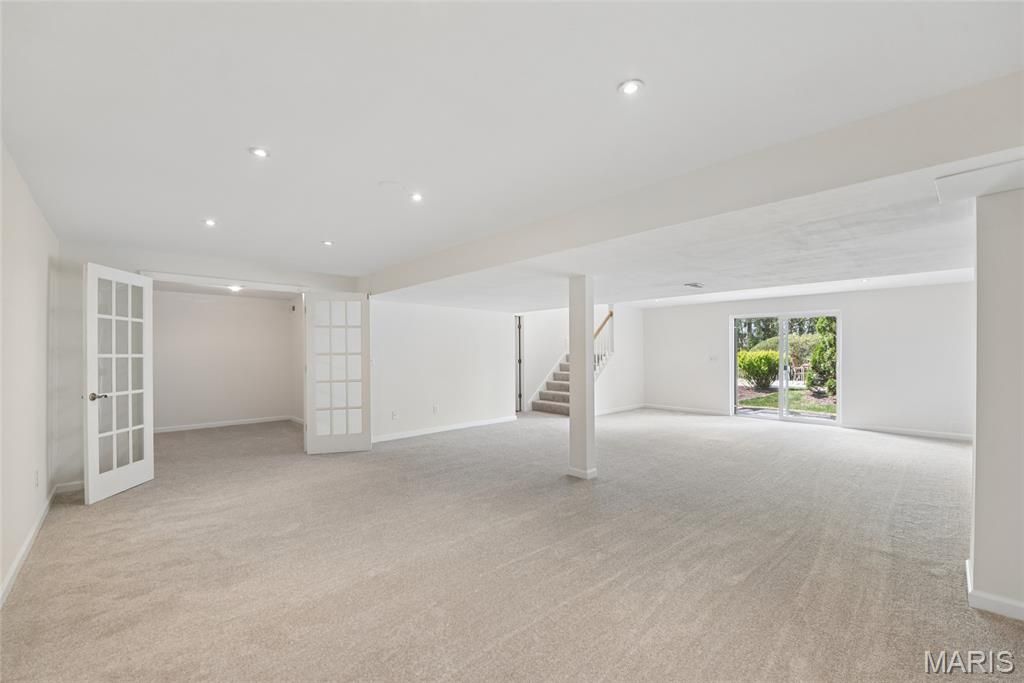 Listing will go active on April 17th. Open House will be on Sunday April 19th. From 1-3pm. Welcome to this beautiful 2 story home located in the heart of Chesterfield at the desirable Spring Hill Bluffs subdivision. The home has 4 bedrooms & 4.5 baths. From the moment you enter the home feels warm and inviting. A formal dining room and home office with glass French doors frame the entry, leading into a spacious family room anchored by built-in bookcases, gas fireplace and wall of windows that brings in the natural light in the afternoon hours & beautiful sunsets. The kitchen & breakfast area flow seamlessly to the newly renovated deck, extending your living space outdoors. Set on a rare private half an acre lot, the backyard feels like your own retreat surrounded by mature trees, with a pool that invites long summer afternoons or weekend entertaining. The kitchen has white 42" cabinets & black granite countertops, center island, planning desk, Butler's pantry. A huge mud/laundry room has access to the deck as it has to the 3-car garage. On the upper level you will find 3 bedrooms with walk-in closets and Jack and Jill bathrooms, where one bedroom has its own bath. A spacious bonus room & a huge primary suite with a big walk-in closet & nice spa-like bath with soaking tub and separate shower & double vanity. The finished walk-out lower level has recreation area with a full bath and a sleeping area/den or whatever it is needed for. The home has a newer roof and gutters (2025). It is freshly painted and has brand new carpet throughout. zoned HVAC, in-ground sprinkle system. The location of the home offering quick access to Highway 40/64 & Chesterfield Valley that offers wide array of shopping, dining and entertainment. Award winning Rockwood schools.