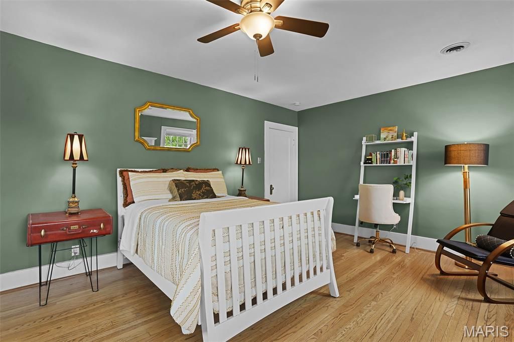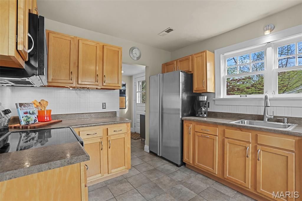Showings begin Thursday, April 16th. Open House Sunday, April 19th from 1-3. Rare opportunity to own a picturesque Century home in the heart of Webster Groves"”just a short walk or golf cart ride to local shops, award-winning dining, and parks. Situated on an impressive corner lot with mature trees, this home features a fully fenced backyard and spacious patio"”perfect for entertaining. Inside, a welcoming entry opens to a generously sized living room with beautiful built-in bookcases, cove ceilings, wood floors, and abundant natural light. A versatile den just off the living room is ideal for a home office or cozy retreat. The separate dining room, highlighted by a charming box bay window, is perfect for hosting gatherings. The bright kitchen includes stainless steel appliances and an electric range with built-in microwave. A convenient half bath completes the main level. Upstairs, you'll find a spacious primary bedroom, two additional bedrooms, and a full bath with tub/shower combo. Original wood floors and ceiling fans add character throughout. The full, unfinished basement offers ample storage and includes a cedar closet. An oversized garage has ample room for vehicles, bikes, workshop, sports gear and more. Enjoy timeless charm, functional space, and an unbeatable location"”your next chapter starts here.