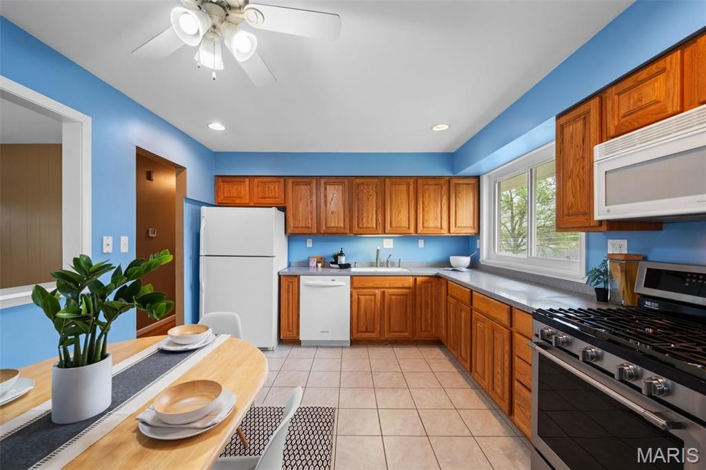 OPEN Sun 4/19 1-3pm! This adorable Affton abode has been lovingly maintained and updated by the same owner for nearly 50 years, and it certainly shows! Start with classic brick curb appeal accented by new roof, gutters, soffits, fascia, and concrete sidewalk, front porch, driveway and patio. Once inside, you'll immediately be at ease in the lovely living room with front picture window and built-in shelving. The spacious eat-in kitchen is the functional heart of the home and features lots of cabinet and counter space, plus all the appliances are included. Retreat to the relaxing primary suite after a long day, including gleaming hardwood floors, generous closet space, and a convenient attached half bath. Two more light & bright bedrooms and a fresh & clean full hall bathroom round out the main floor. The partially finished lower level feels *almost* too good to be true with huge family room, focal point fireplace and flexible bonus room/den. There is even tons of extra storage space in the laundry/utility room. Speaking of storage, a shed out back is ready & waiting to be filled, perhaps with supplies to start your own garden in the raised beds. Don't forget the practical attached carport and useful patio with brand new railing, perfect for grilling & chilling on a nice evening. And the convenient location within the desirable Affton School District can't be beat. Come see this cutie on a cul-de-sac for yourself - maybe you'll be the lucky owner for the next 48 years!