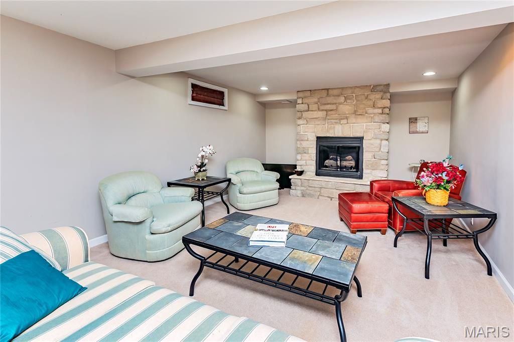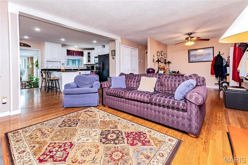 If you are looking for a spacious ranch home with 3 bedrooms, 3 baths, main floor laundry, level fenced lot, cul-de-sac location, great schools, and a short walk to community pool, sport courts, playground, common ground etc. this is a must see for you! Main level has 1693 square feet plus a finished lower level for combined living area of nearly 2,500 square feet. Enter from nice porch into the living room that is open to the kitchen and current office space that includes a fireplace. Kitchen has been updated with white 42" cabinets with crown molding, granite counters, gas stove, microwave/convection oven, recessed lighting, and a pantry. From the kitchen you look across the open stairwell into the large dining room that could easily be a family room complete with another fireplace. However, there is a 4 seasons room to the rear adding additional 16x12 living area. Also, you can exit to the screened in porch or to the patio heading into the level fenced rear yard. Primary suite offers a double closet and 3/4 bath. Two additional bedrooms, hall bath, and main floor stackable laundry rounds out the main level. If all of this was not enough, lower level has huge 28x10 recreation room that adjoins the 21x12 family room which has a stone fireplace as a focal point. For convenience there is a partial kitchen and 1/2 bath serving this additional space. There is a laundry area down here leading to the utility area. Finishing off LL is a storage room or craft area. Quiet cul-de-sac location within the neighborhood and only a short block walk to the subdivision amenities. All of this and conveniently located not far from 270 and Telegraph with highly rated Oakville Schools. Just a short walk to Cliff Cave Park to boot. Come see starting this Friday. Thanks!!!