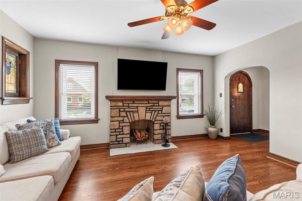 Don't miss out on this charming and beautifully updated 2 bed / 1.5 bath St. Louis brick bungalow with stained glass windows that are anything but ordinary. This is a total showstopper, and it's in an unbeatable location just off Macklind! Outside you are welcomed by the beautifully manicured lawn and landscaping and as soon as you step inside you will be swept away by the endless character this house has to offer. You will step into a spacious foyer with a huge front coat closet and the house is filled with warm, inviting living spaces. The dining room is truly the heart of the home and a perfect place for entertaining. The home features a standout bathroom renovation (2021). It is spacious, polished, and feels like a retreat. There are beautifully refinished gleaming hardwood floors throughout the main level (2020) as well as updated windows (2024) and custom blinds throughout (2025). The kitchen is equipped with a Kenmore Elite 5-burner range and a newer dishwasher (2023) which adds to everyday convenience. Major updates include a new roof and gutters (2025) and porch and chimney tuck pointing (2024), providing peace of mind for years to come. Outdoor living shines with an incredible front porch that is perfect for relaxing or a good porch party! The fenced yard adds privacy and function to the home as well. The 5300 block of Tholozan has an incredible community feel to it. Block parties and seasonal gatherings bring everyone together and truly make it one of the most loved neighborhoods in St Louis. Enjoy close access to local favorites like Russell's, Clementine's, and the Mack, plus you're minutes away from the vibrant Hill area which is home to iconic spots like Milo's Tavern and Di Gregorios Italian Market. Run, don't walk to see this stunning south city gem!